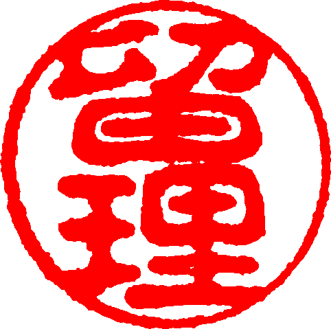 This is my Japanese 印鑑 Inkan seal, my signature.top) 留 RYU, [RU], to(meru), fasten down; hold, keep (in); to(maru), stay, settle;bottom) 理 RI, reason, logic, principle留理I am RyuRi in Japan